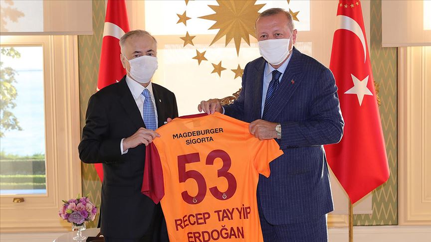 Sarı-kırmızılı kulüpten yapılan açıklamaya göre, Çengelköy'deki Vahdettin Köşkü'nde dün gerçekleştirilen ziyarette Mustafa Cengiz, Cumhurbaşkanı Erdoğan'a 53 numaralı Galatasaray formasını takdim etti.