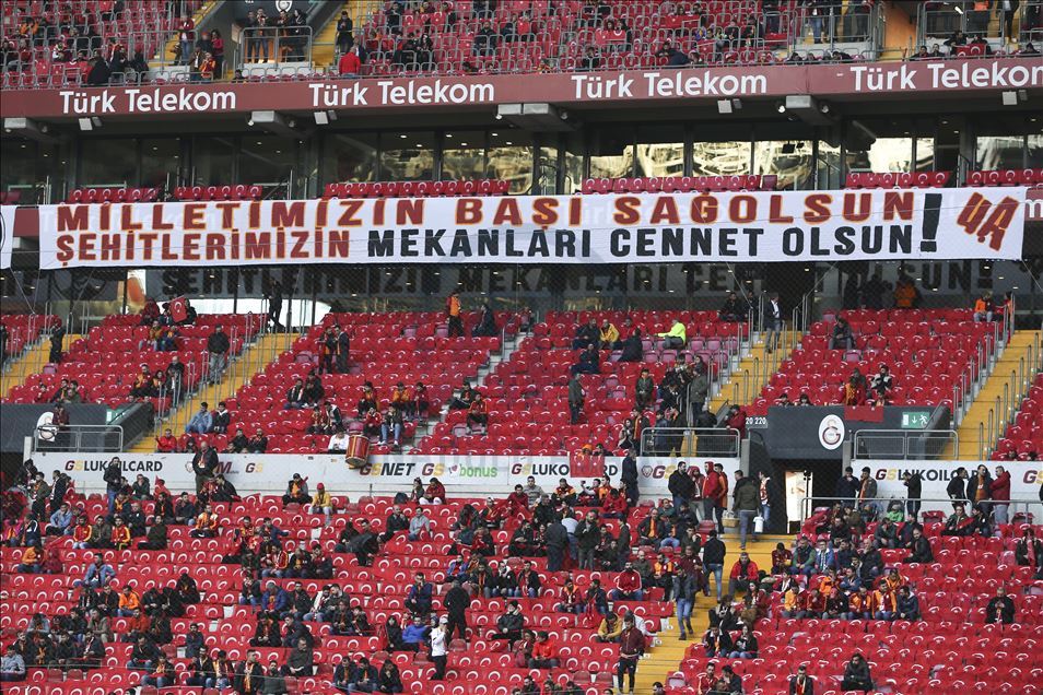 Maçın oynandığı Türk Telekom Stadı'nın koltuklarına Türk bayrağı bırakılırken, fotoğrafları spor tabelasından gösterilen şehitlerin isimleri tek tek okundu. Taraftarlar, şehitlerin isimleri okunduğunda "Burada" diye karşılık verdi. Bu sırada bazı taraftarların gözyaşlarına hakim olamadıkları görüldü.