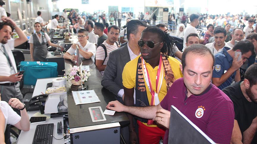 Atatürk Havalimanı'na tezahüratlar eşliğinde gelen Gomis, Galatasaraylı taraftarların sevgi gösterileri nedeniyle uzun süre bilet işlemleri için kontuar önünde bekledi.