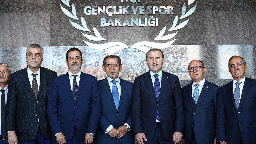 Kulüpler Birliği Vakfı Başkanı Dursun Özbek ile beraberindeki kulüp temsilcileri, Gençlik ve Spor Bakanı Osman Aşkın Bak'ı makamında ziyaret etti.