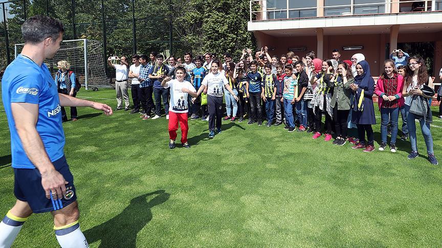 Fenerbahçe Kulübünün davetlisi olarak İstanbul'da bulunan Muhammet Ali ve Birdal'ın yanı sıra Kırklareli'nin Pınarhisar ilçesindeki okullardan gelen öğrenciler çalışmayı izledi.