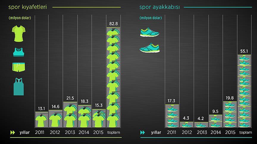 Böylece hem spor kıyafeti ve ayakkabısı alanlarında 2011-2015 döneminde yapılan toplam ithalat 138 milyon dolar oldu.