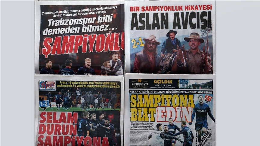 Lider Trabzonspor'un Spor Toto Süper Lig'in 23. haftasında konuk olduğu Galatasaray'ı 2-1 yenmesinin ardından, Trabzon'da yayımlanan yerel gazetelerde şampiyonluk söylemleri daha da arttı.