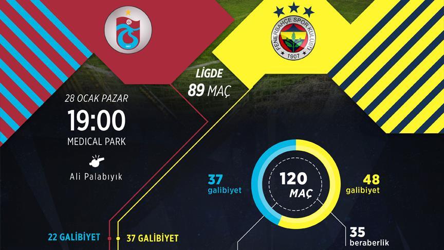 Trabzon'daki 44 lig maçında ise Fenerbahçe 17, ev sahibi ekip 16 kez kazandı, 11 karşılaşma eşitlikle sona erdi. Hüseyin Avni Aker Stadı'ndaki lig maçlarında bordo-mavililer 47, sarı-lacivertliler 52 gol kaydetti.