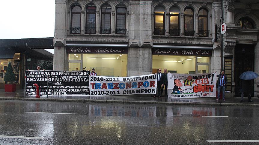 İsviçre'ye gelen bir grup bordo-mavili taraftar, toplantının yapıldığı otel önünde, Trabzonspor Kulübünün yaptığı şikayet başvurusuna destek amacıyla kısa bir gösteri düzenledi.