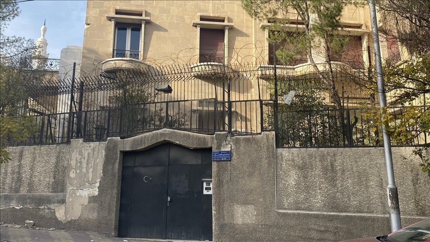 AA'nın, rejimin devrildiği Şam'da dışardan görüntülediği Büyükelçilik binasının dış tarafında hasar gözlenmedi.