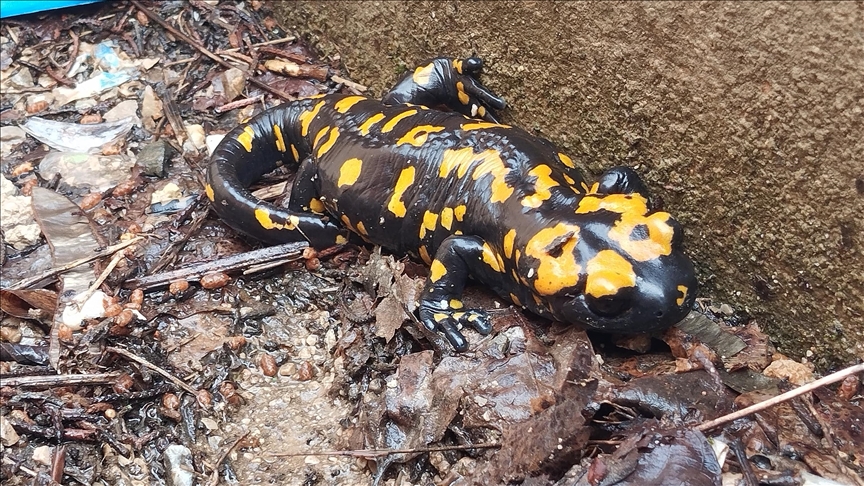 Adana'nın Saimbeyli ilçesinde nesli tükenme tehlikesi altındaki, "Türk semenderi" olarak bilinen sarı benekli semender görüldü.