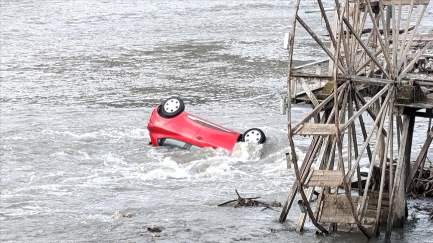 Anlık gelişmeler için AA Canlı Ekipler, yürüttükleri çalışma sonucu otomobilde mahsur kalan sürücü ile annesi Hanife K'yi kurtardı.