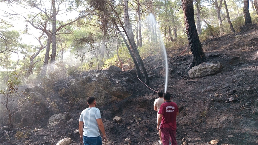 Havadan ve karadan yapılan müdahaleyle kontrol altına alınan yangında soğutma çalışmaları devam ediyor.