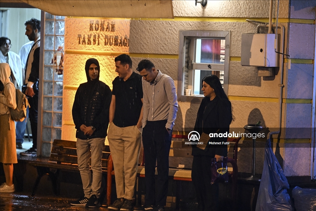 Yağışa hazırlıksız yakalanan vatandaşlar, kapalı alanlarda yağmurun durmasını bekledi.