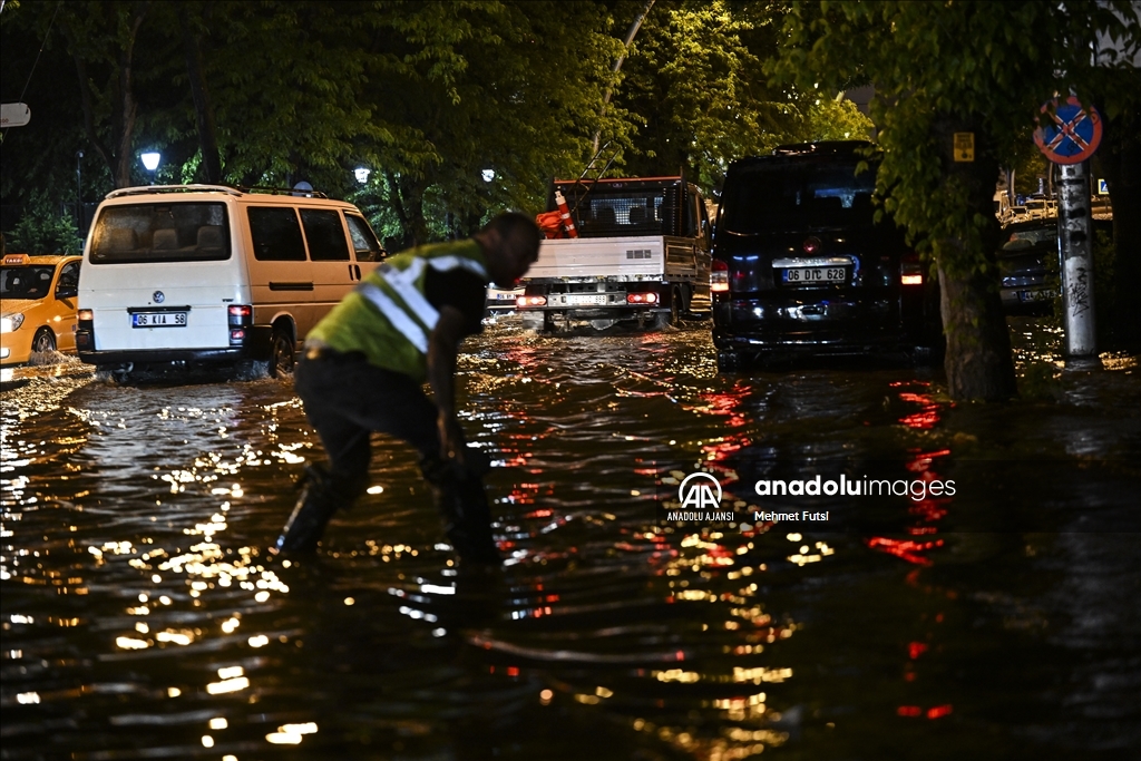 Çankaya'nın Beşevler ve Bahçelievler semtinde yollarda su birikintileri oluştu. Yollarda biriken suyun tahliyesi için Ankara Büyükşehir Belediyesi ekipleri çalışma yürüttü.