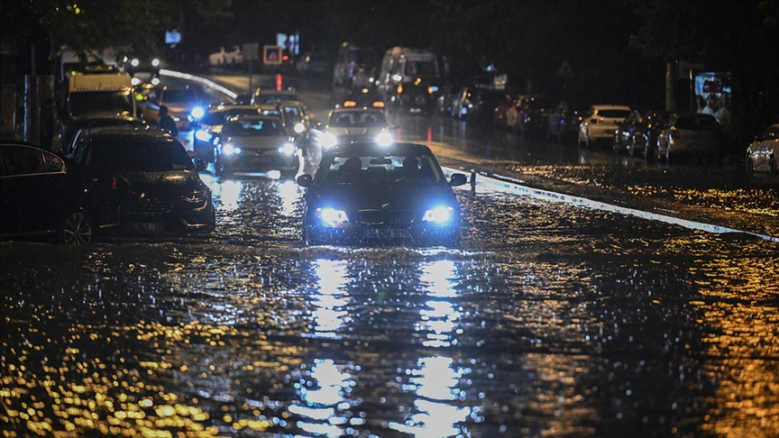 Akşam saatlerinde başlayan yağış nedeniyle bazı cadde ve sokaklarda su birikintileri oluştu. Yağış, trafikte aksamaya neden oldu.