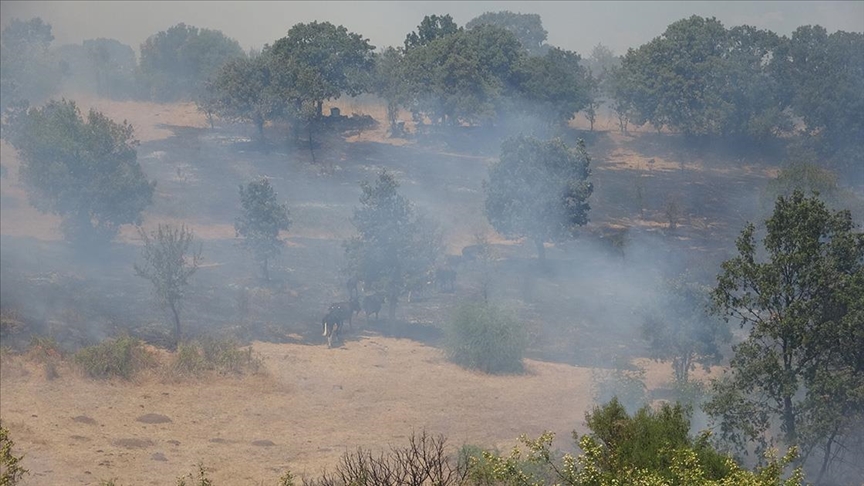 Pınardere köyünde mangal kömürü üretimi de yapılan tarım arazisinde henüz belirlenemeyen nedenle yangın çıktı. Bu bölgenin yakınında bulunan büyükbaş hayvanlar ise hızla uzaklaştı.