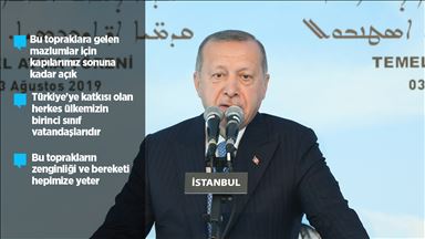 Vatanın her köşesini ihya etmekte ve Türkiye Cumhuriyeti'nin imkanlarını ülkenin her bir ferdine adil şekilde ulaştırmakta kararlı olduklarını vurgulayan Erdoğan, şunları kaydetti: