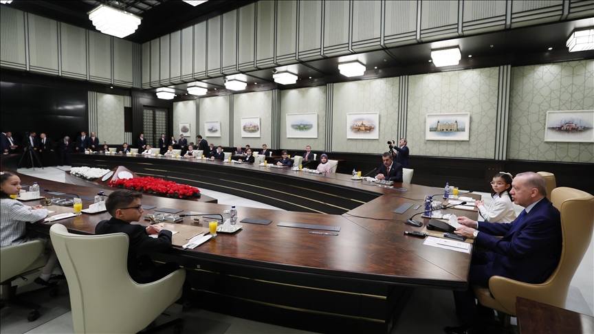 Çocukların 23 Nisan Ulusal Egemenlik ve Çocuk Bayramı'nı kutlayan Erdoğan, çocukları misafir etmekten büyük memnuniyet duyduğunu söyledi.