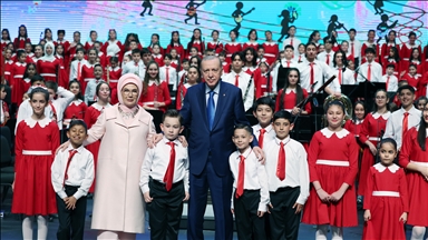 23 Nisan Ulusal Egemenlik ve Çocuk Bayramı'nın önemine değinen Erdoğan, "23 Nisan sadece siz çocukların değil, milli iradenin de bayramıdır. Son 23 yılda bu anlayışla ülkemize, milletimize, özellikle de siz çocuklara hizmet etmeye çalıştık. Sizlere daha mutlu, daha müreffeh, her alanda parmakla gösterilen bir ülke teslim etmek için koşturduk. Hamdolsun, Türkiye'yi çok güzel seviyelere getirdik. İnşallah çok daha iyi yerlerde olacağız. Türkiye Yüzyılı hedefimize ulaşana kadar durmayacağız." dedi.