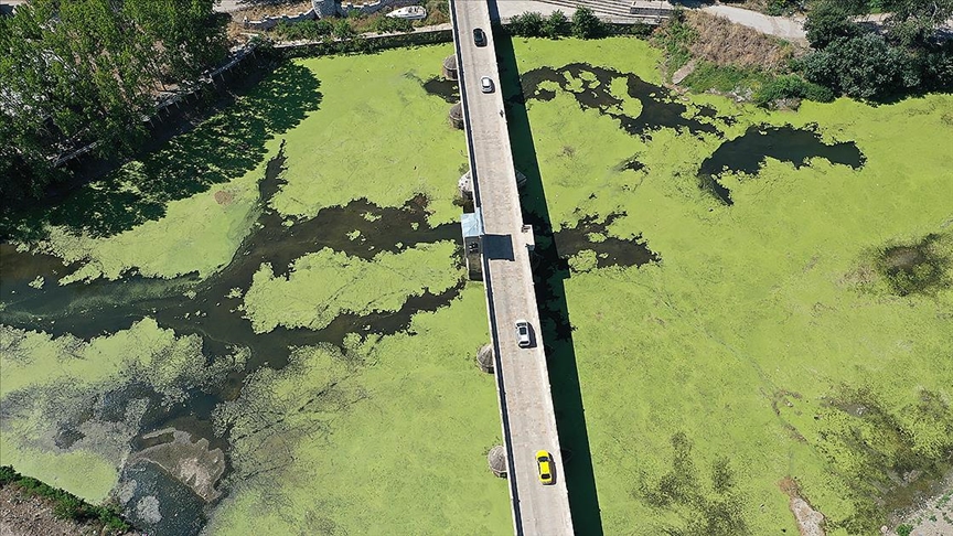Tunca Köprüsü ile Kanuni Köprüsü çevresinde nehir yüzeyinin tamamı neredeyse yosun ve su mercimekleri ile kaplandı.