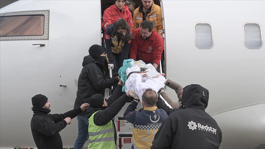 Sağlık Bakanlığına ait uçakla Adana'dan İstanbul'a getirilen yaralılar sağlık ekiplerince sedyelerle ambulanslara alındı.
