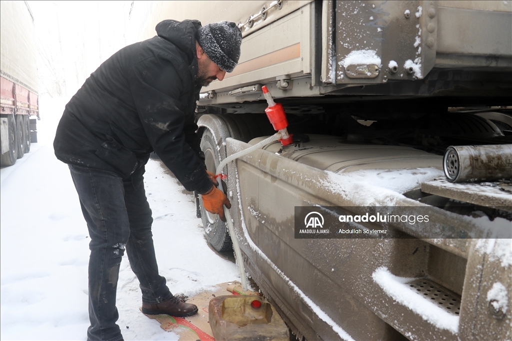 Tır sürücüsü Sinan Kahraman ise araç yakıt depolarının donmaya başladığını belirterek, "İstanbul'dan geliyorum. Aracı akaryakıt istasyonuna park edip evime gitmem gerekiyor ve ev köyde. Aracın donamaması için gece yarısı nasıl gelip çalıştırayım. Bu sefer İran'a gitsem evime gidemem. Dönüşte de buraya park etsem yine aracın yakıt deposu donar." diye konuştu.