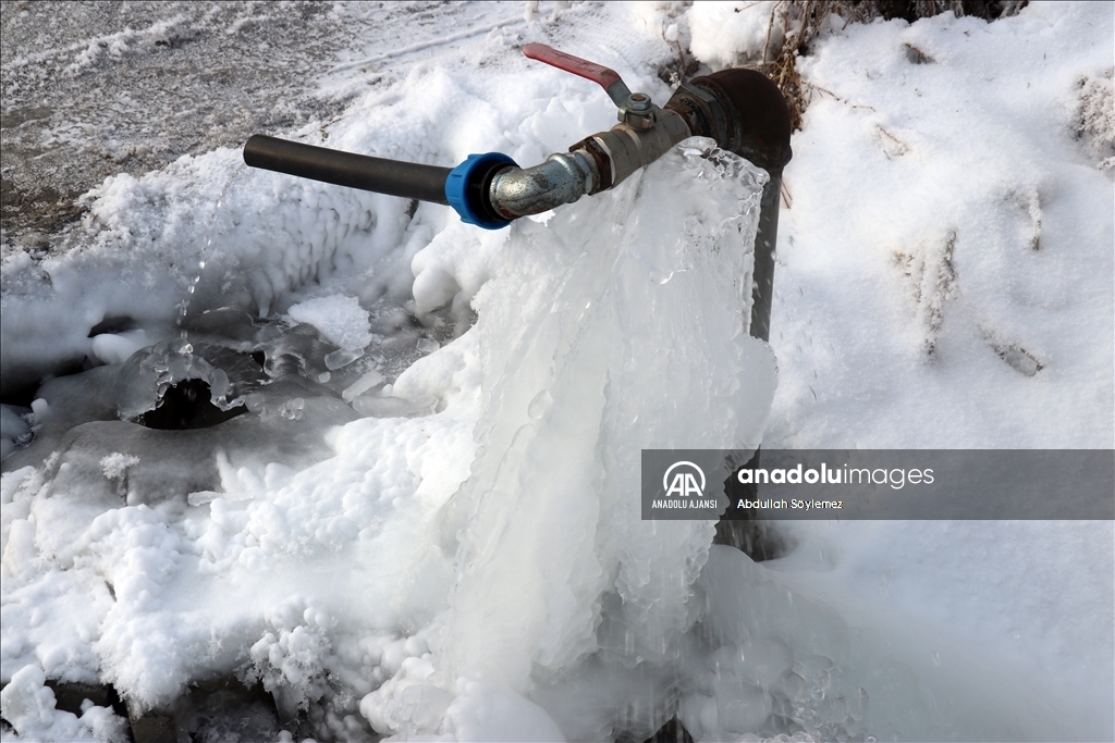 Çatılarda buz sarkıtlarının oluştuğu kentte, bazı yerlerde çeşmeler dondu.