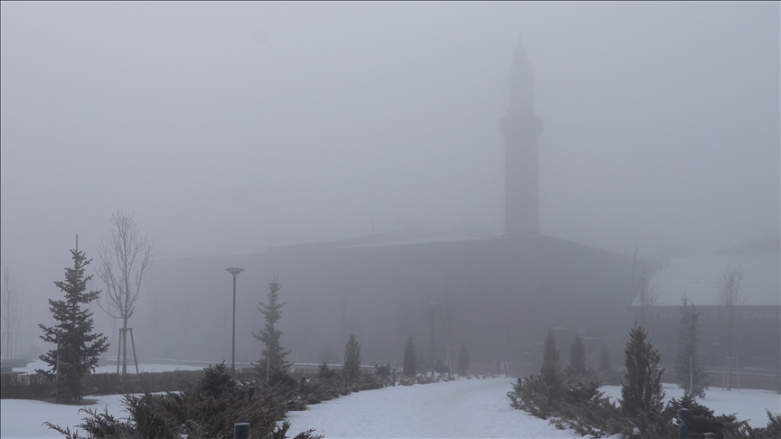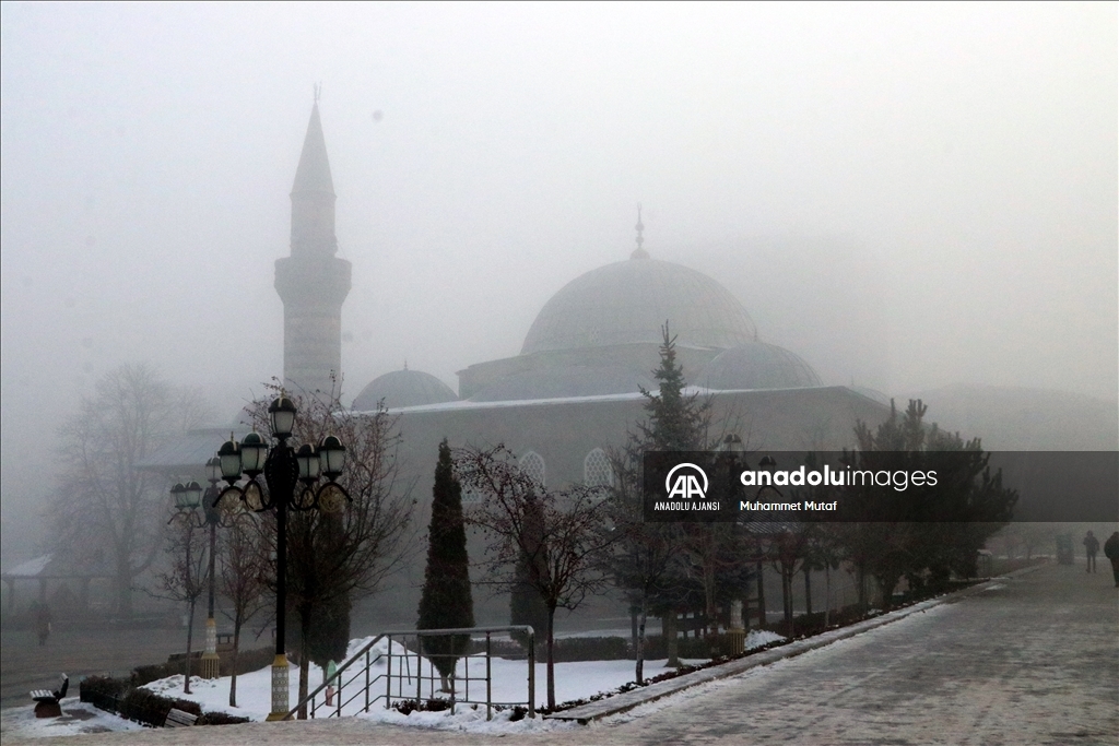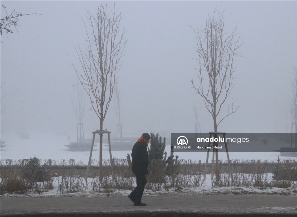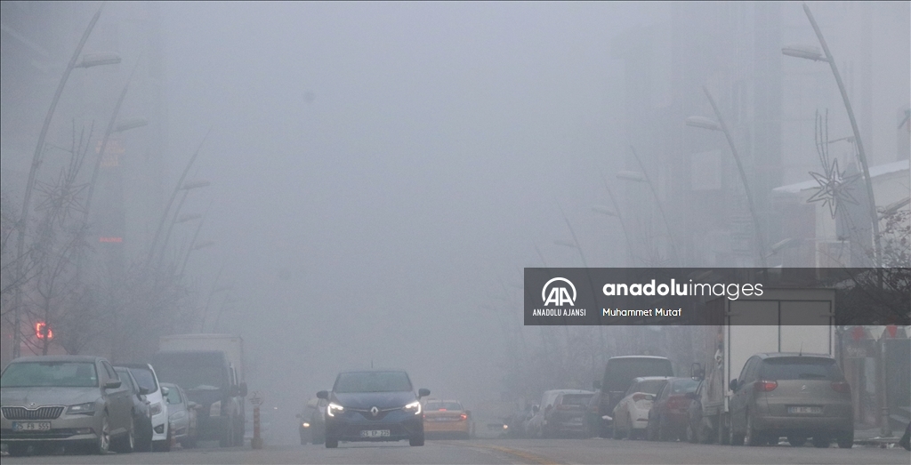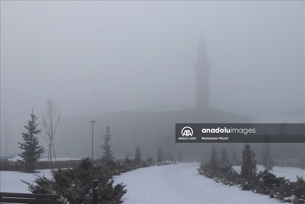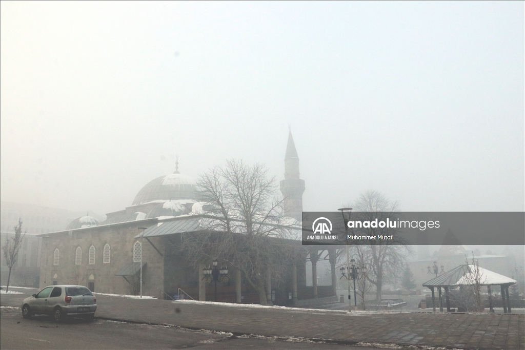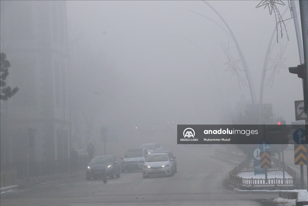 Erzurum şehir merkezinde yoğun sis etkili oldu.