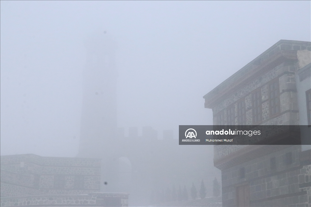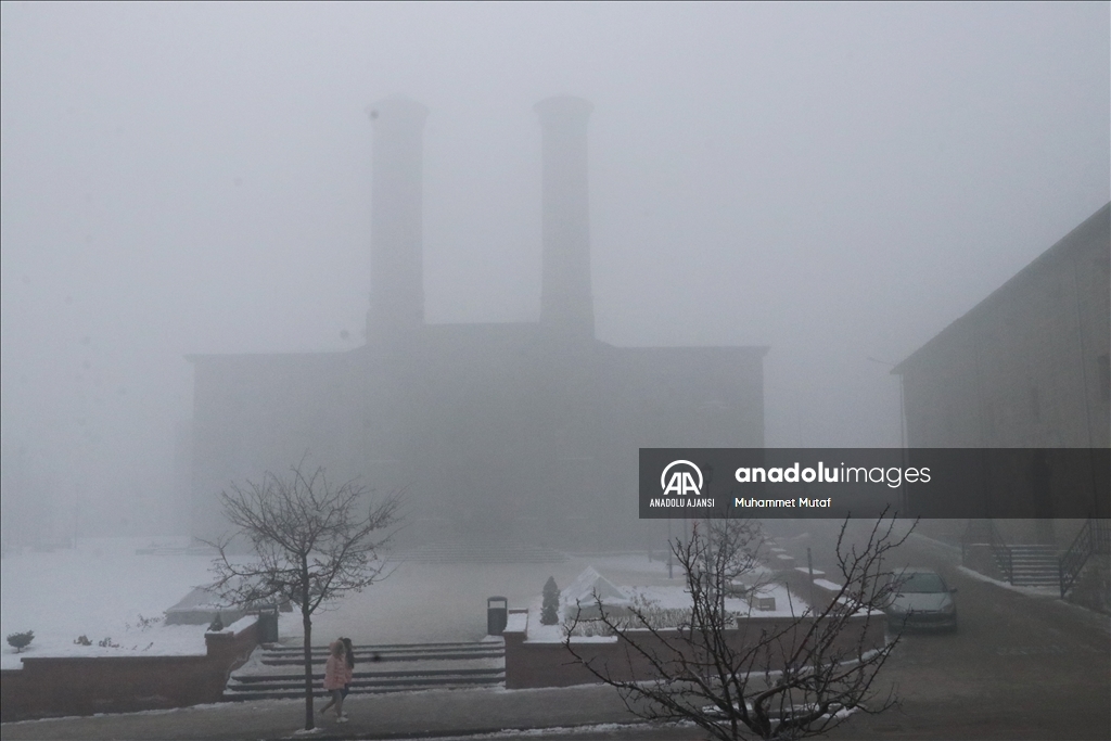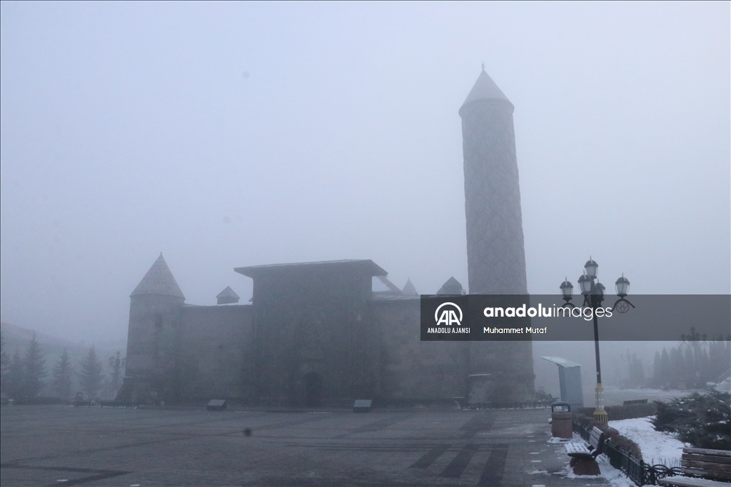 Erzurum Kalesi, Çifte Minareli Medrese, Ulu Cami gibi tarihi yapılar da sisle kaplandı.