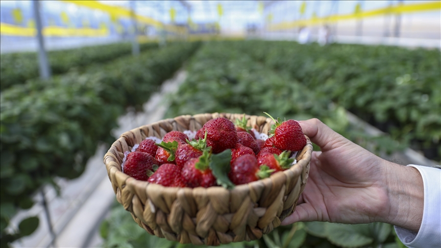 Yaklaşık 600 metrekare alanda bulunan serada topraksız tarım tekniği kullanılarak üretilen çileklerin ilk hasadı yapıldı.