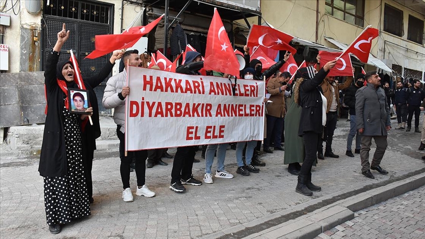 HDP ve terör örgütü PKK aleyhine sloganlar atan aileler, çocuklarına seslerini duyurmaya çalıştı.