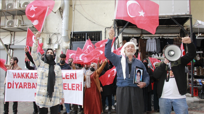 Cumhuriyet Caddesi'nde bir araya gelen aileler, ellerinde "Hakkari anneleri Diyarbakır anneleri el ele" yazılı pankart, Türk bayrakları ve çocuklarının fotoğraflarıyla HDP İl Başkanlığı binasının önüne kadar yürüdü.