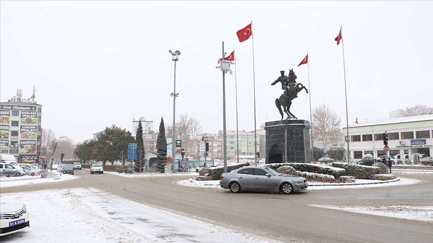Niğde'de gece saatlerinde etkili olan kar yağışı nedeniyle kent beyaza büründü.