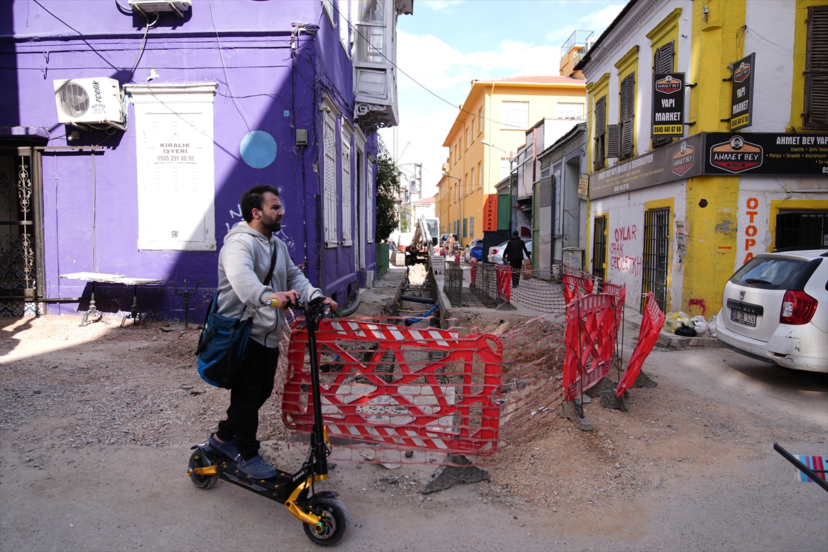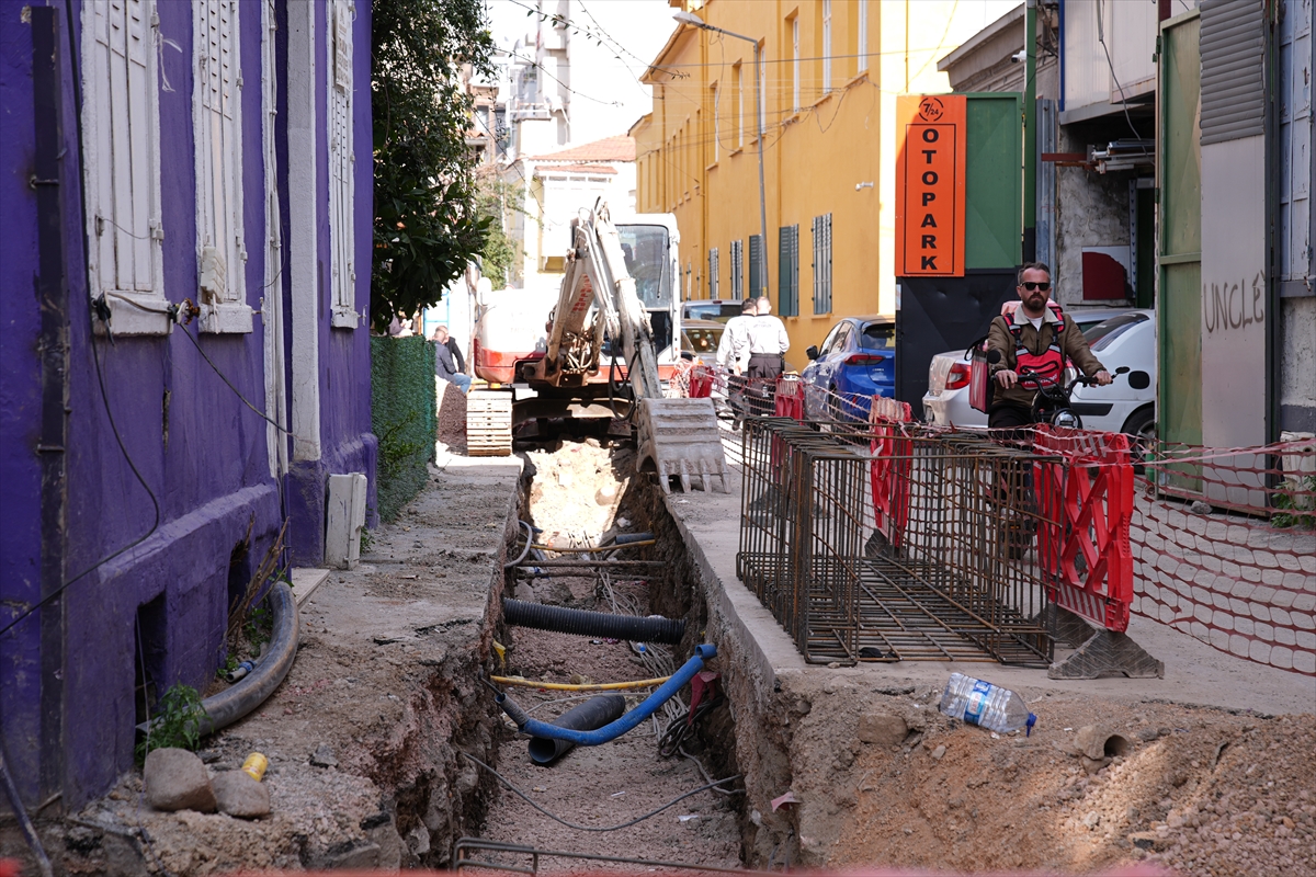 Kentin en işlek yerleşim alanlarından Alsancak'ta, birçok sokakta çeşitli kurumların sürdürdüğü farklı altyapı çalışmaları nedeniyle trafik akışı aksarken, yayalar da ilerlemekte güçlük çekiyor.