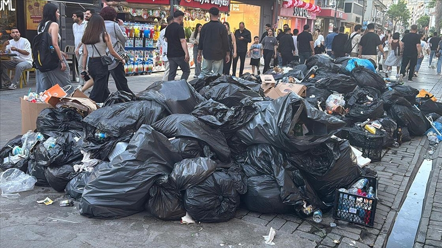 AA Canlı Kente gelen turistlerin vakit geçirdiği, Büyükşehir Belediyesi sorumluluğundaki Konak Kıbrıs Şehitleri Caddesi ve kordon boyunda da işçilerin grevi nedeniyle çöpler toplanmıyor.