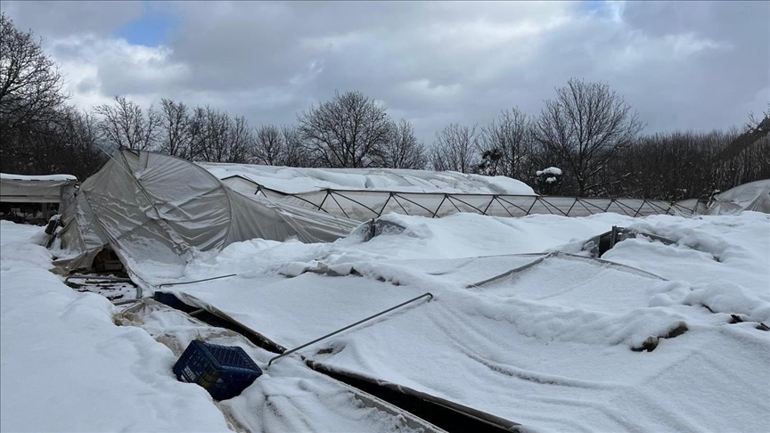 Karabük'ün Eskipazar ilçesinde yoğun kar yağışı nedeniyle seraların çökmesi güvenlik kamerasınca görüntülendi.