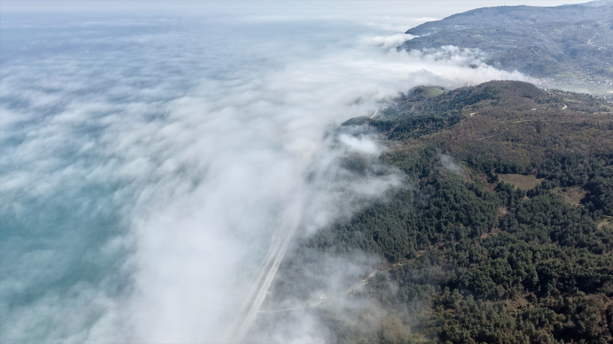 Sinop'ta Karadeniz sahil yolu üzerinde oluşan sis bulutları dronla görüntülendi.