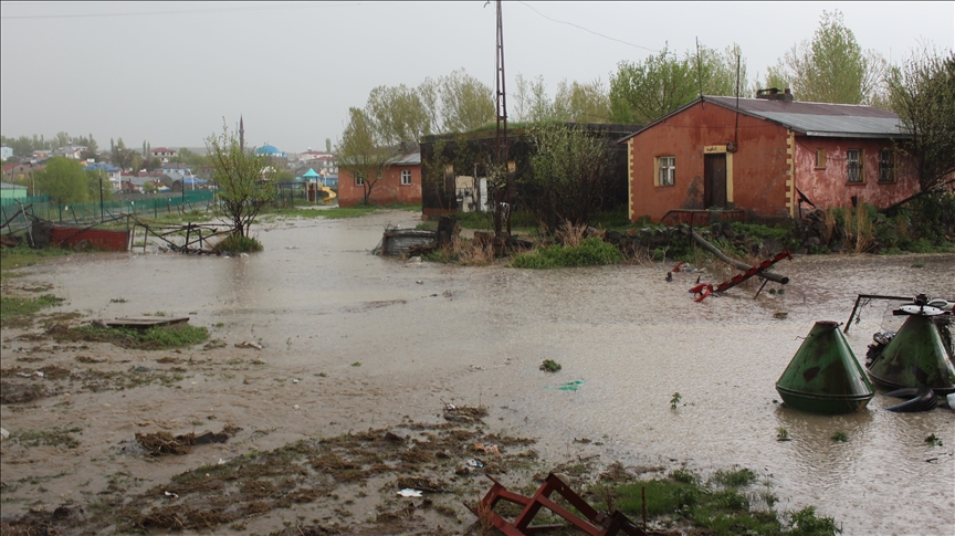 Akyaka-Kars tren yolu hattı sular altında kaldı, taşkın nedeniyle ilçe merkezindeki bazı caddelerde taş ve toprak yığınları oluştu.
