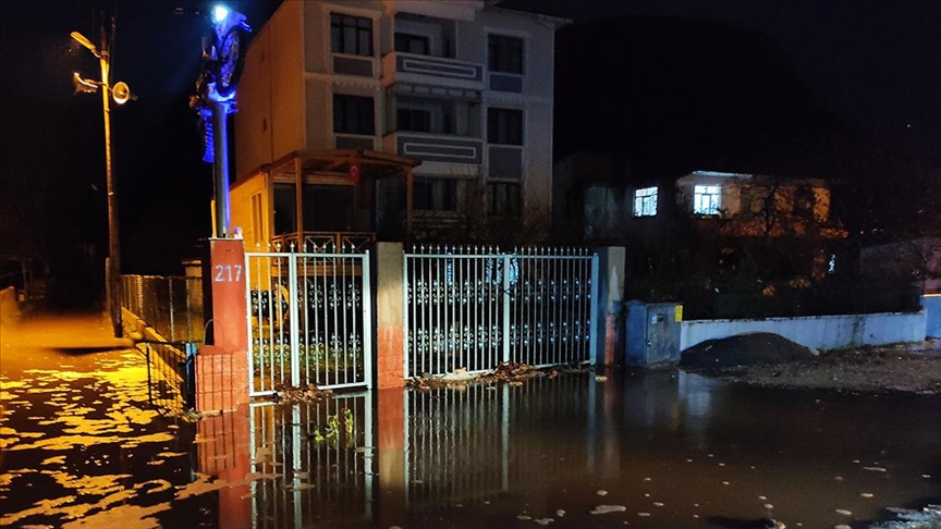 Sahil yolunda bulunan Çandır Mahallesi'nde denizin taşması sonucu sokaklar su altında kaldı.