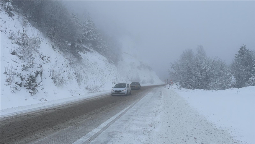 Kastamonu'nun Abana, Bozkurt ve Çatalzeytin ilçelerini birbirine bağlayan kara yolunun 1450 rakımlı Yaralıgöz Dağı mevkisinde kar etkili oluyor.
