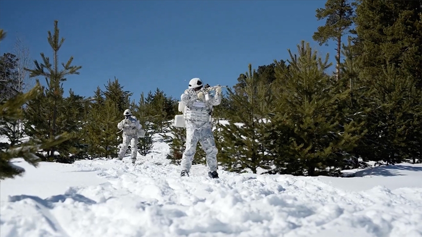 Görüntülerde komandoların kar üstünde kayakla intikali, kayak üzerinde silahla atış becerilerini gösteren anlar yer aldı.