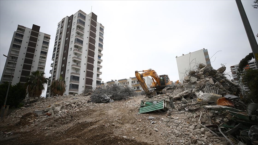 Mezitli ilçesi Deniz Mahallesi'nde, depremlerde hasar gören 40 dairenin yer aldığı Baykent Sitesi'nin yıkımı için 3 Nisan'da başlatılan çalışmalar devam etti.