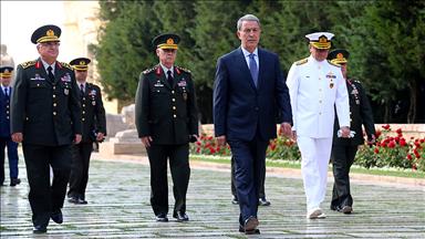 Akar'ın tören kıtasını selamlamasıyla başlayan törende, askeri bando tarafından iki ülke ulusal marşları çalındı. Anıta çelenk bırakan Akar, daha sonra saygı duruşunda bulundu.