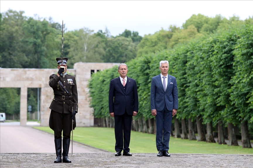 Milli Savunma Bakanı Hulusi Akar, askeri törenle karşılandığı Letonya'da, Kahramanlar Mezarlığı'nı ziyaret etti.
