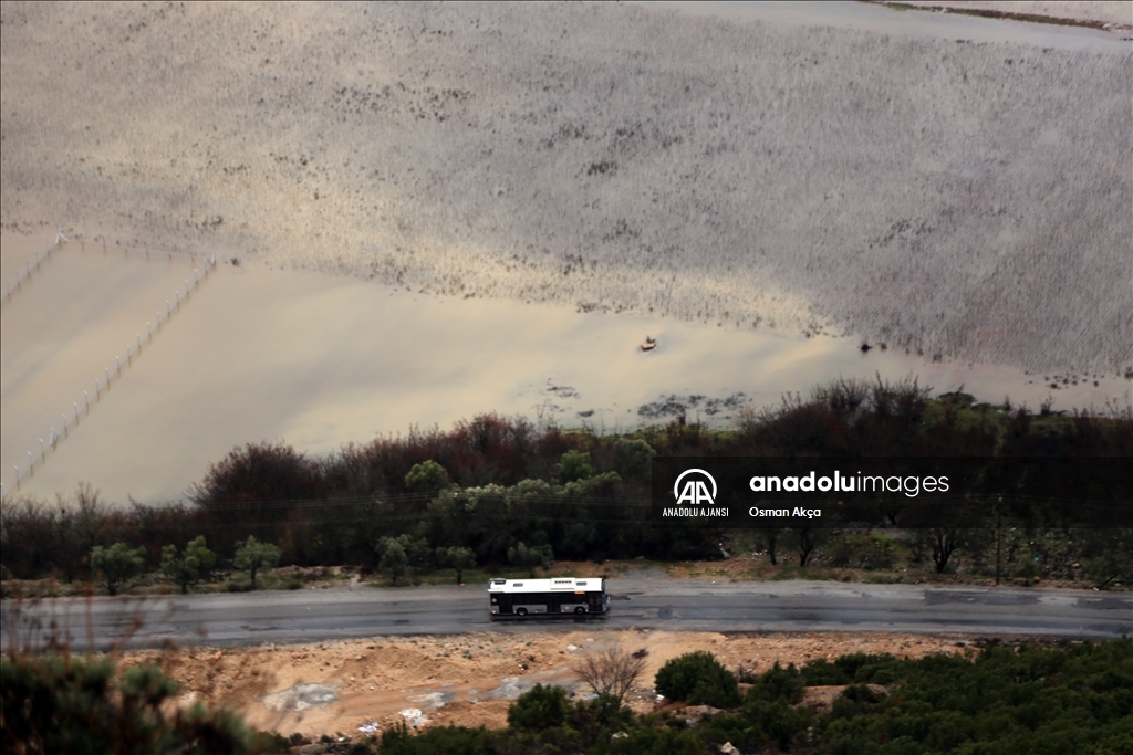 Yüksek kesimlerden gelen çamurlu su sebebiyle denizin rengi bazı bölgelerde kahverengiye dönüştü.