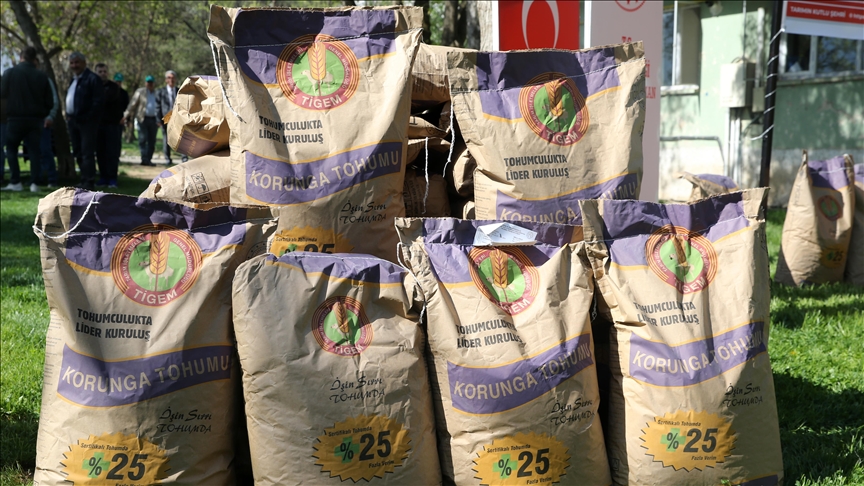 Konuşmaların ardından 150 çiftçiye yüzde 100'ü hibe olan 100 ton korunga tohumunun dağıtımına başlandı.