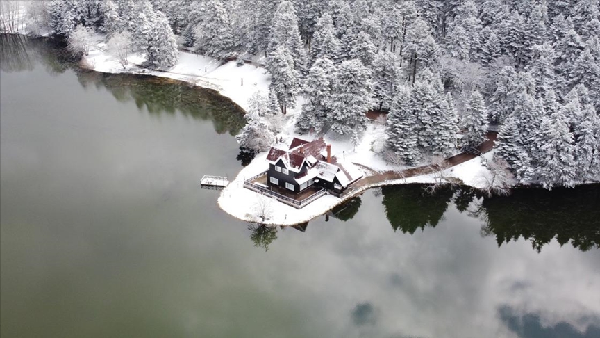 Bolu'nun doğal güzellikleriyle ünlü Gölcük ve Abant tabiat parklarında kar aralıklarla devam ediyor.