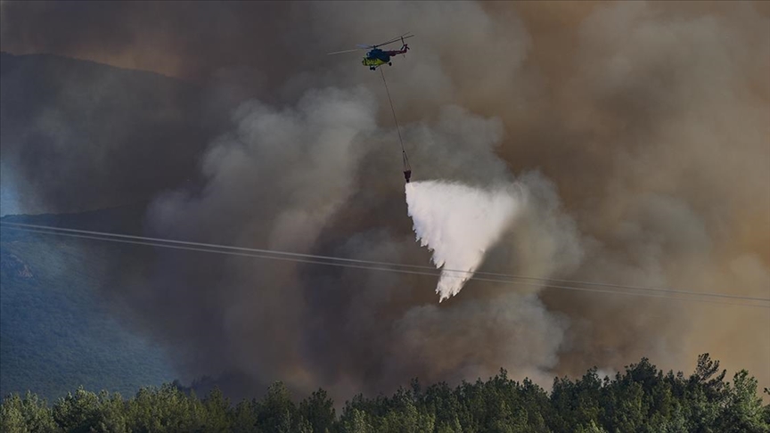 Elban, yangına 8 uçak, 16 helikopter, 57 arazöz, 29 dozer ve çok sayıda iş makinesi, su tankeri ve 643 personelle müdahale edildiğini söyledi.