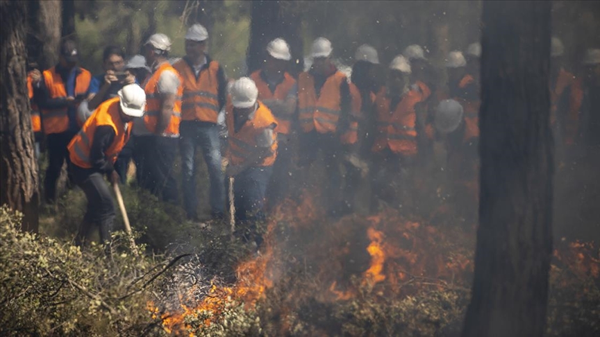 "Şu anda 2 bin işletme şefimizi Antalya'da eğitime tabi tutuyoruz. Türkiye'nin çeşitli bölgelerinden her hafta 150 kişi gelip tatbikatlara, eğitimlere katılıyor. Bunun yanında muhafaza memurlarımızı, işçilerimizi eğitiyoruz. Her gelen grup 5 gün eğitim alıyor, 3 gün büroda teorik, 2 gün de arazide uygulamalı eğitim görüyor. Temsili yangın çıkarıyoruz, söndürüyoruz, arazöz, tırmık kullandırıyoruz."