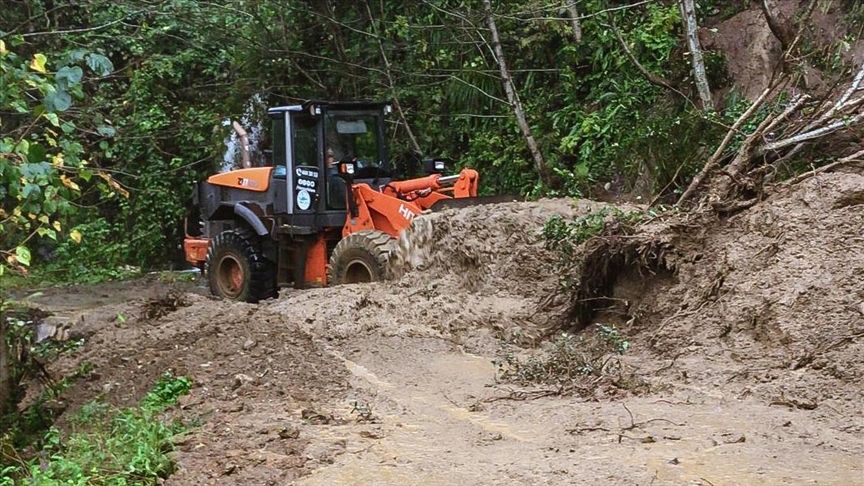 İl Özel İdaresi, 27 personel ve 21 iş makinesiyle ulaşımda aksamaların yaşandığı heyelanlı bölgelerde çalışma yürütüyor.