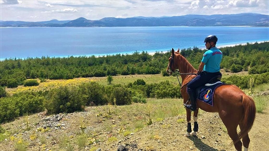 Her yıl binlerce yerli ve yabancı turistin ziyaret ettiği Salda Gölü'nün sahip olduğu doğal güzelliklerinin, çevresindeki ormanlık alanların korunması ve yoğun ziyaretçi sayısından olumsuz etkilenmemesi için 2020'den beri yaz aylarında Atlı Jandarma Timi görev yapıyor.