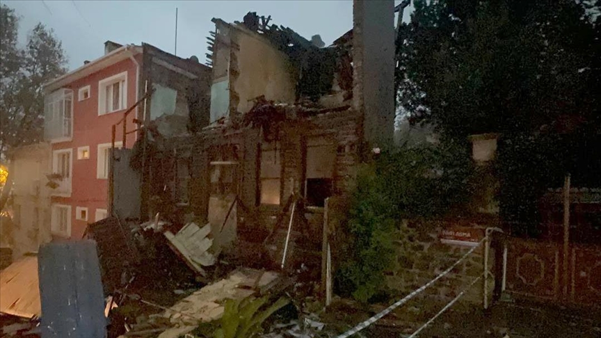 Sarıyer'de 3 katlı metruk ahşap bina çöktü