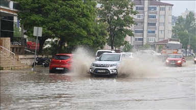 Edirne'de başlayan ve daha sonra sağanağa dönüşen yağış nedeniyle bazı cadde ve sokaklarda su birikti.